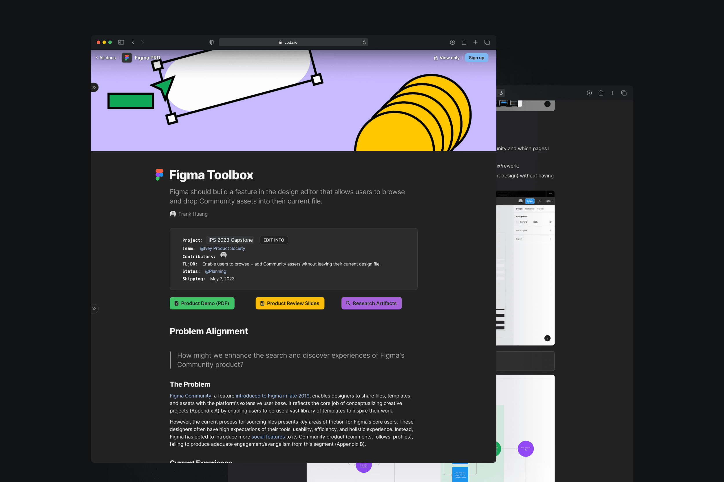 For the final step in my capstone, I pulled everything together into a PRD on Coda—fittingly, the same platform that Figma’s internal product team uses for their documentation.
